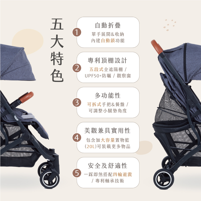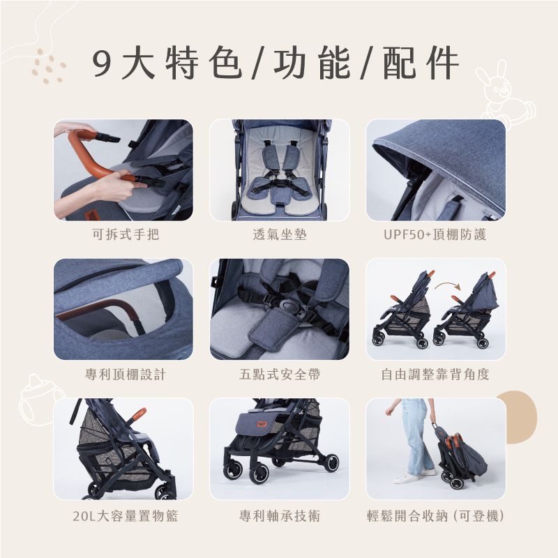 ◆適合機艙:適用外出、旅行,推車總重量僅6.8公斤,