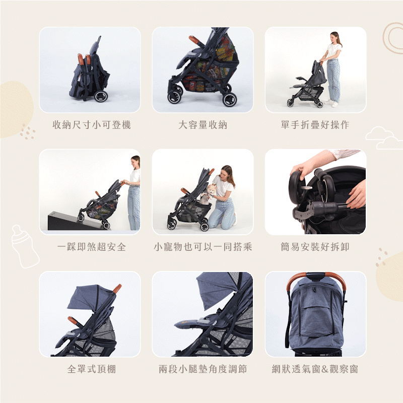 全球首款二合一的輕便嬰兒車和寵物手推車。