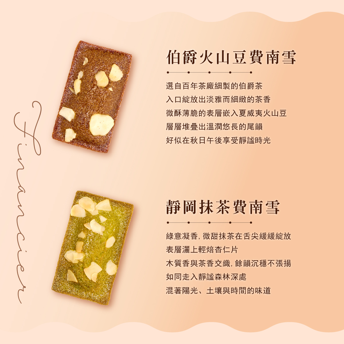 ➺ 靜岡抹茶費南雪|微甜抹茶的茶香與輕焙杏仁片的木質香交織