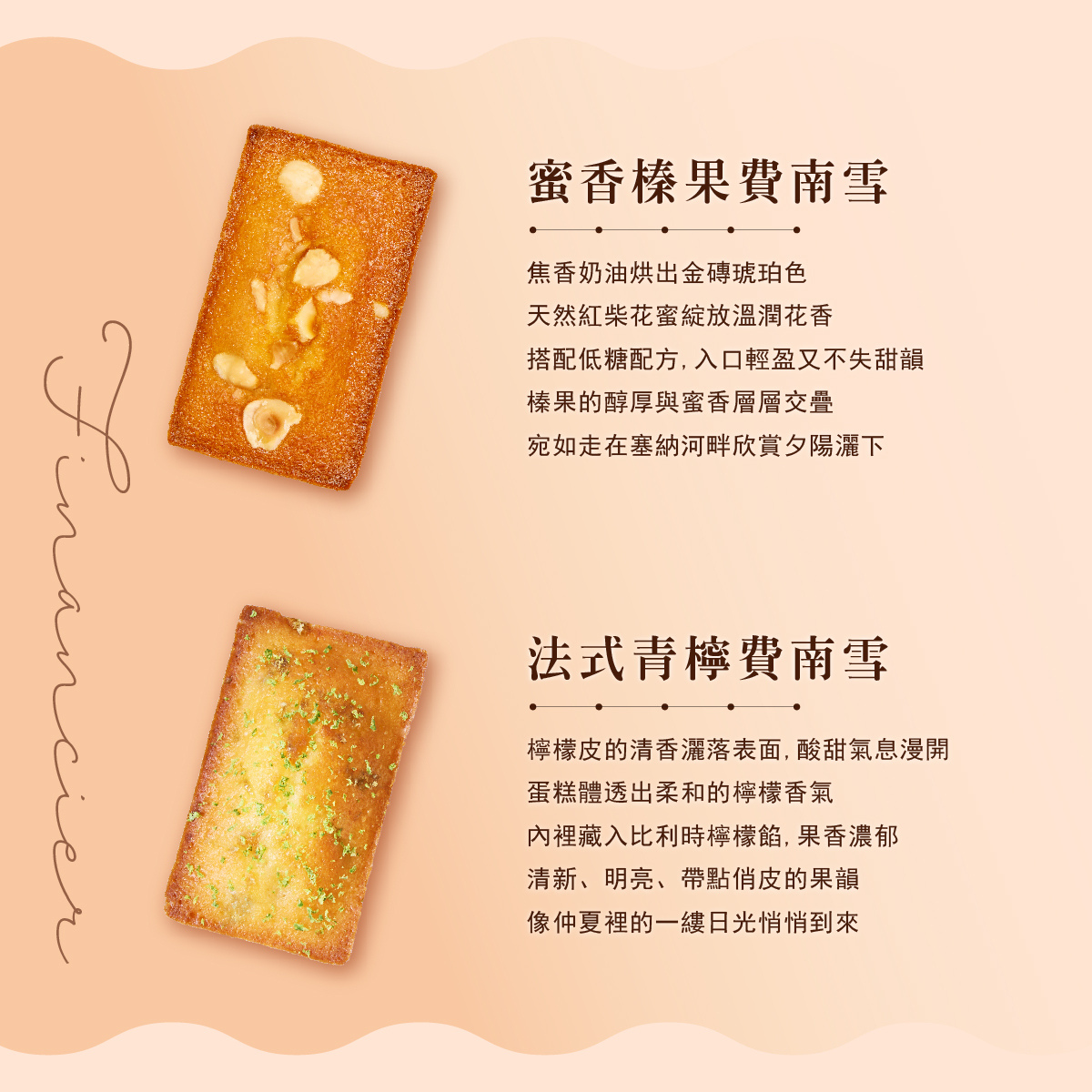 ➺ 蜜香榛果費南雪|金磚琥珀色,溫潤花蜜香氣與榛果的醇厚交疊