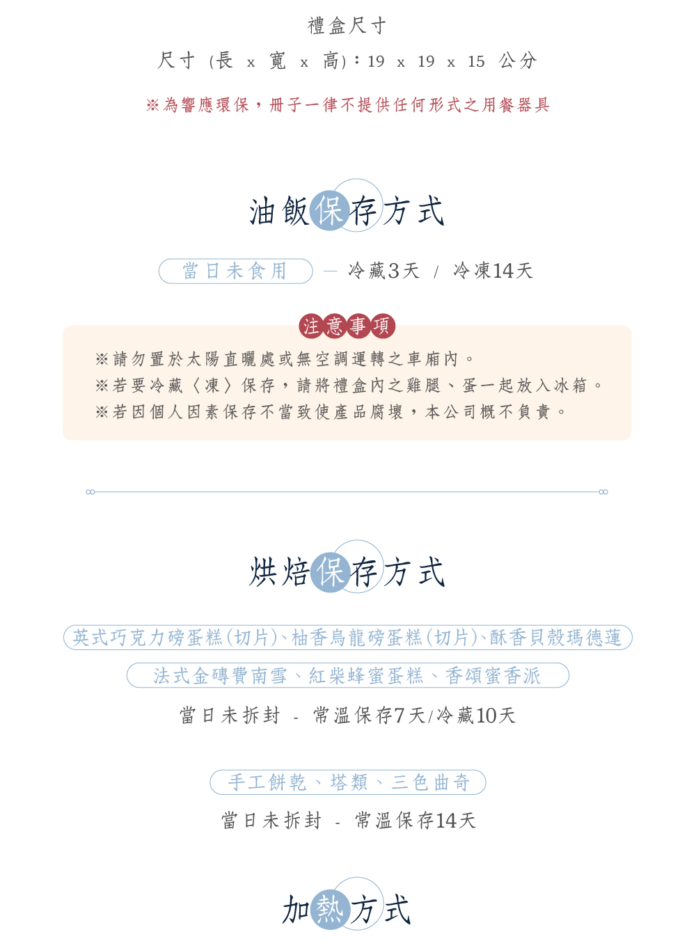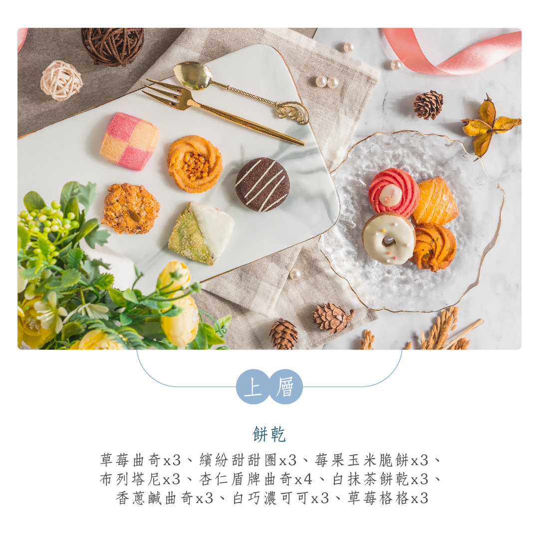 • 內容款式:糕點餅乾、 紅柴蜂蜜蛋糕、雙入磅蛋糕、十六宮格餅乾、九宮格餅乾